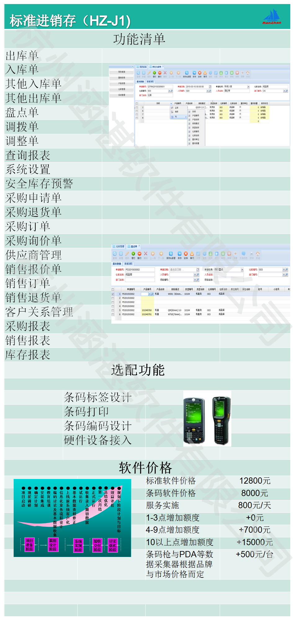 涵湛進銷存管理系統集采購、銷售、庫存管理和應收、應付款管理為一體,提供訂單、采購、銷售、退貨、庫存、往來發票、往來賬款、業務員等的管理。