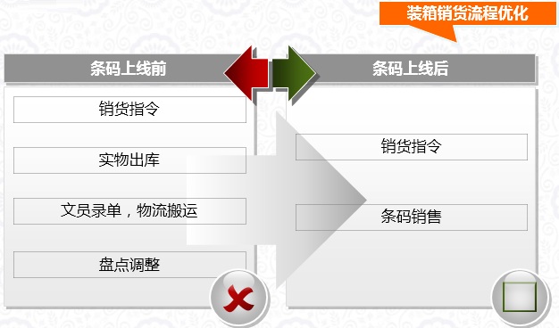 盤點的體系也得到了極大的改善,逐漸采用每日循環(huán)盤點的方法進行庫存管理;因為銷貨出庫撿貨和裝箱運用條碼,也使得出庫效率大大提高