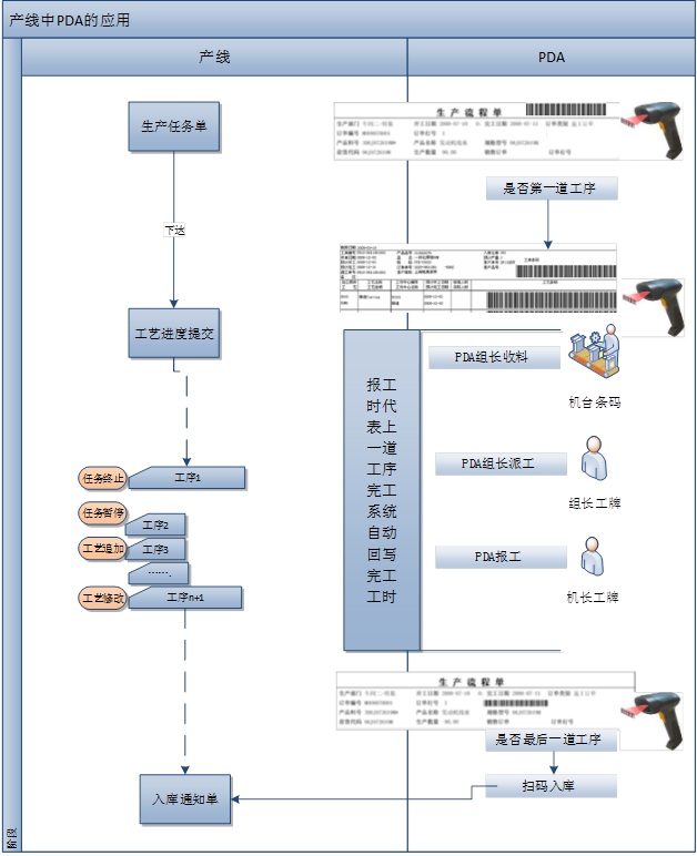 3) 數據采集:生產和倉庫現場的數據采集大多數可由手工錄入變為掃描,實現快速準確采集數據,并能實時傳遞和展示數據;