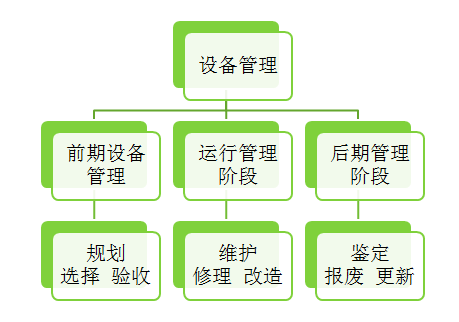 設備管理的階段,包括與設備購置相關的前期管理階段、與設備使用相關的運行管理階段、與設備更新相關的后續管理階段。各階段的范圍和管理內容,如下圖所示。生產總監在設備管理的不同階段,必須圍繞相關內容,有的放矢地展開工作。