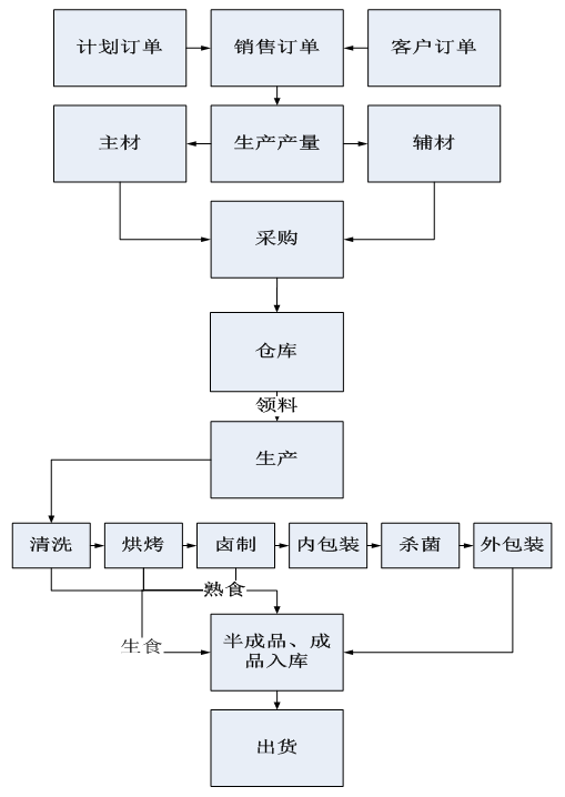XXX公司主要經營包裝食品,本次軟件需求重點在于生產各環節的損耗管控。上下道環節數據交接傳遞準確,訂單進度管控,車間任務進度透明化,半成品、成品庫存數量清晰掌控。