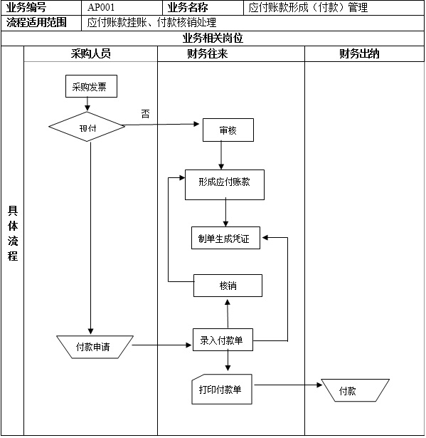 1、 采購人員收到供應商開具的采購發票后錄入到【采購管理】模塊,如果對供應商本次開票付現款或付部分現款需要對采購發票做現付處理。 2、 財務往來會計根據【采購管理】模塊傳遞來的采購發票,與手工收到的真實發票核對,確認無誤后,在【應付賬款】內對采購發票進行審核,生成相關憑證。 現付: 借:物資采購 應交稅金—應交增值稅—進項 貸:銀行存款(現金) 部分現付: 借:物資采購 應交稅金—應交增值稅—進項 貸:銀行存款(現金) 應付賬款 賒購: 借:物資采購 應交稅金—應交增值稅—進項 貸:應付賬款 3、 供應商催要賬款時,由采購業務員進行借款申請,經相關經理審批(參見手工合同審批流程),到財務處支取款項,財務往來會計在【應付賬款】模塊中錄入付款單,進行核銷客戶應付賬款,生成核銷應付憑證。 付款單憑證: 借:應付賬款(預付賬款) 貸: 銀行存款(現金) 進行核銷處理后,生成如下憑證: 借:應付賬款 貸:預付賬款 4、 打印收款單到出納,出納開支票或支付現金,登記現金日記賬和銀行日記賬。