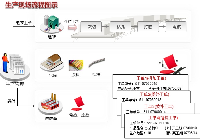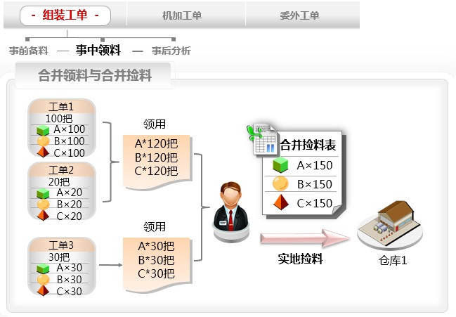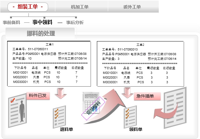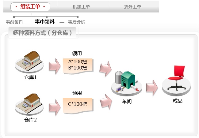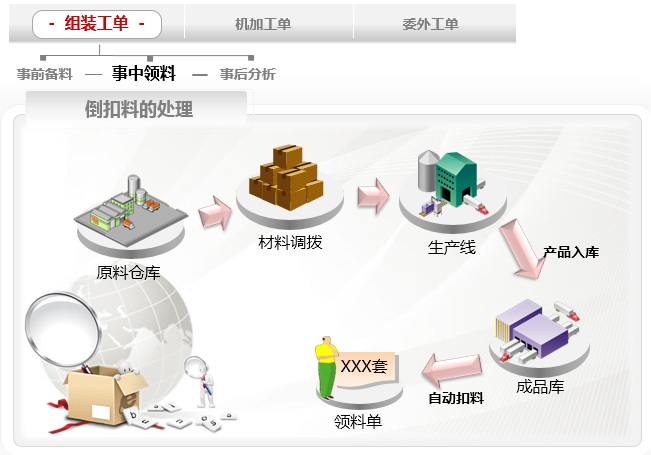 ---原料倉-材料調撥-生產線-產品入庫-自動扣料