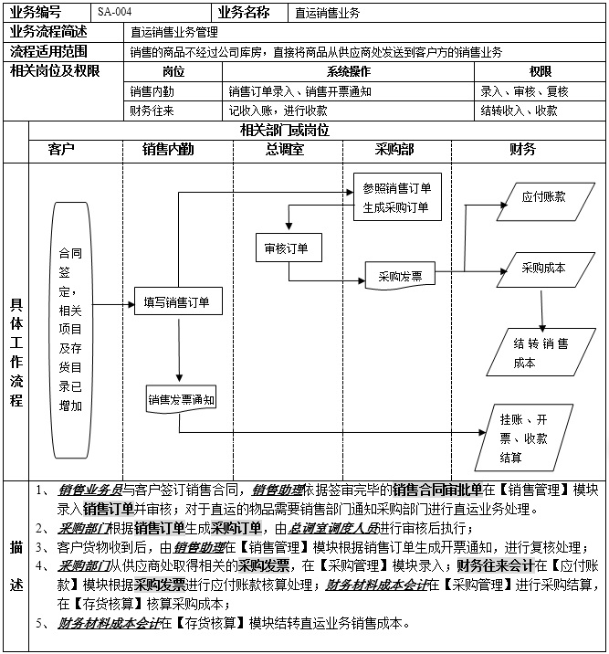 1直運(yùn)銷售業(yè)務(wù)無采購入庫、銷售發(fā)貨的處理過程,銷售訂單的業(yè)務(wù)類型必須選擇為“直運(yùn)銷售”。