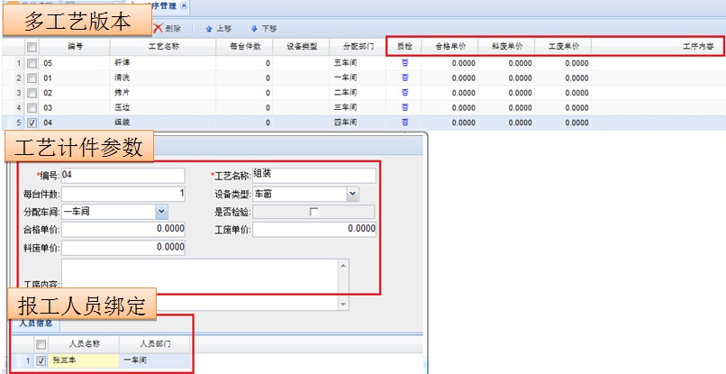 2、生產制造個性化基礎業務數據操作平臺---多版本制造BOM、工藝管理、工時計件管理;