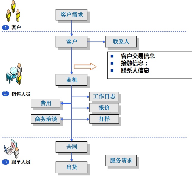 3、銷售人員對商機進行跟進,根據客戶要求進行報價、打樣、商務洽談,從而取得某個部件的供應合同